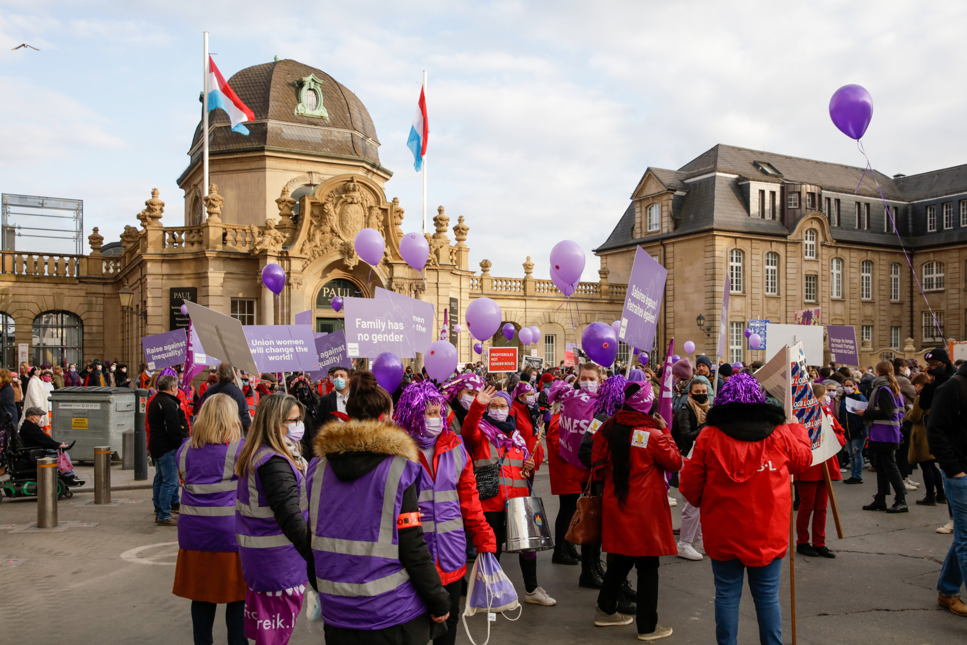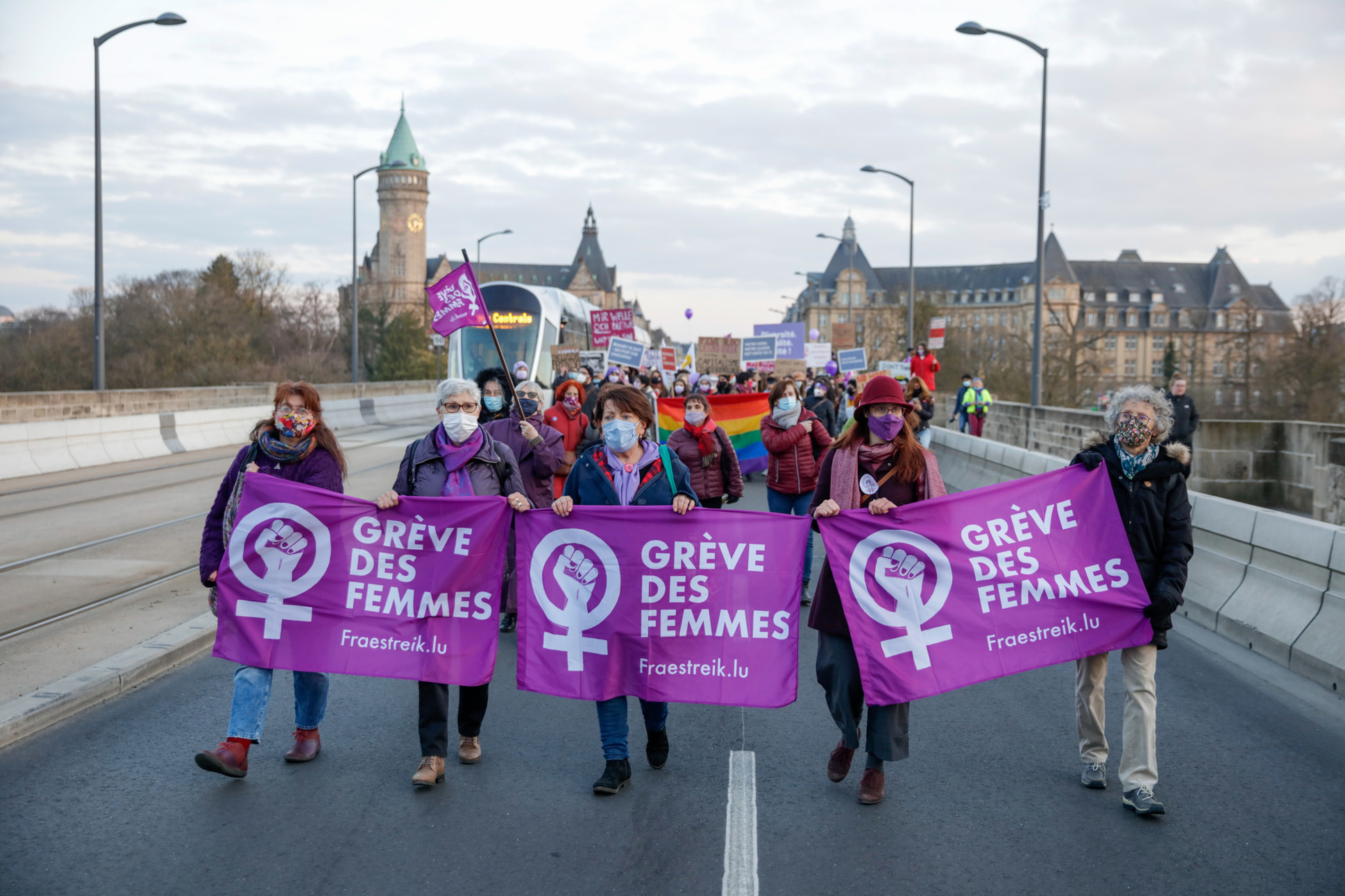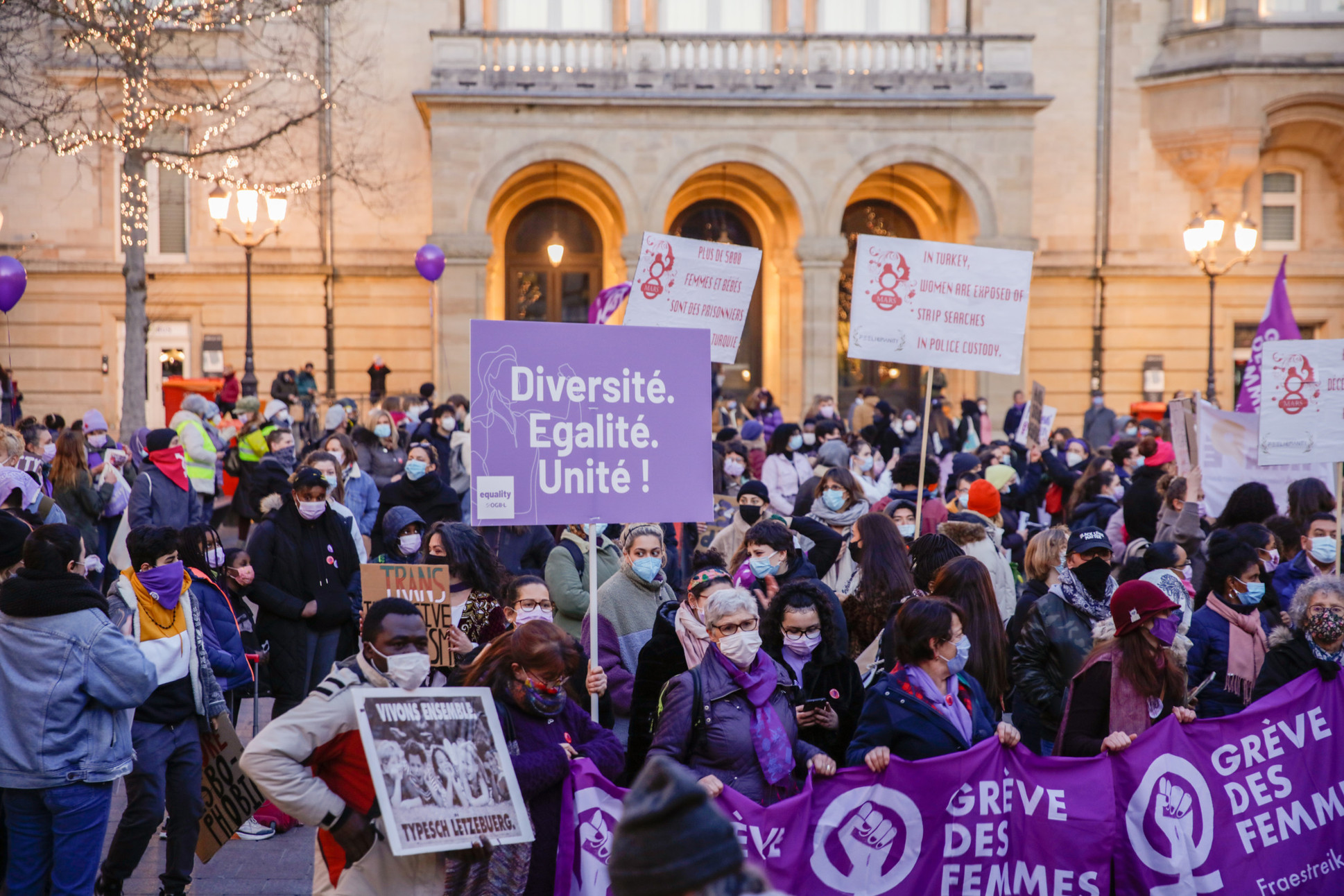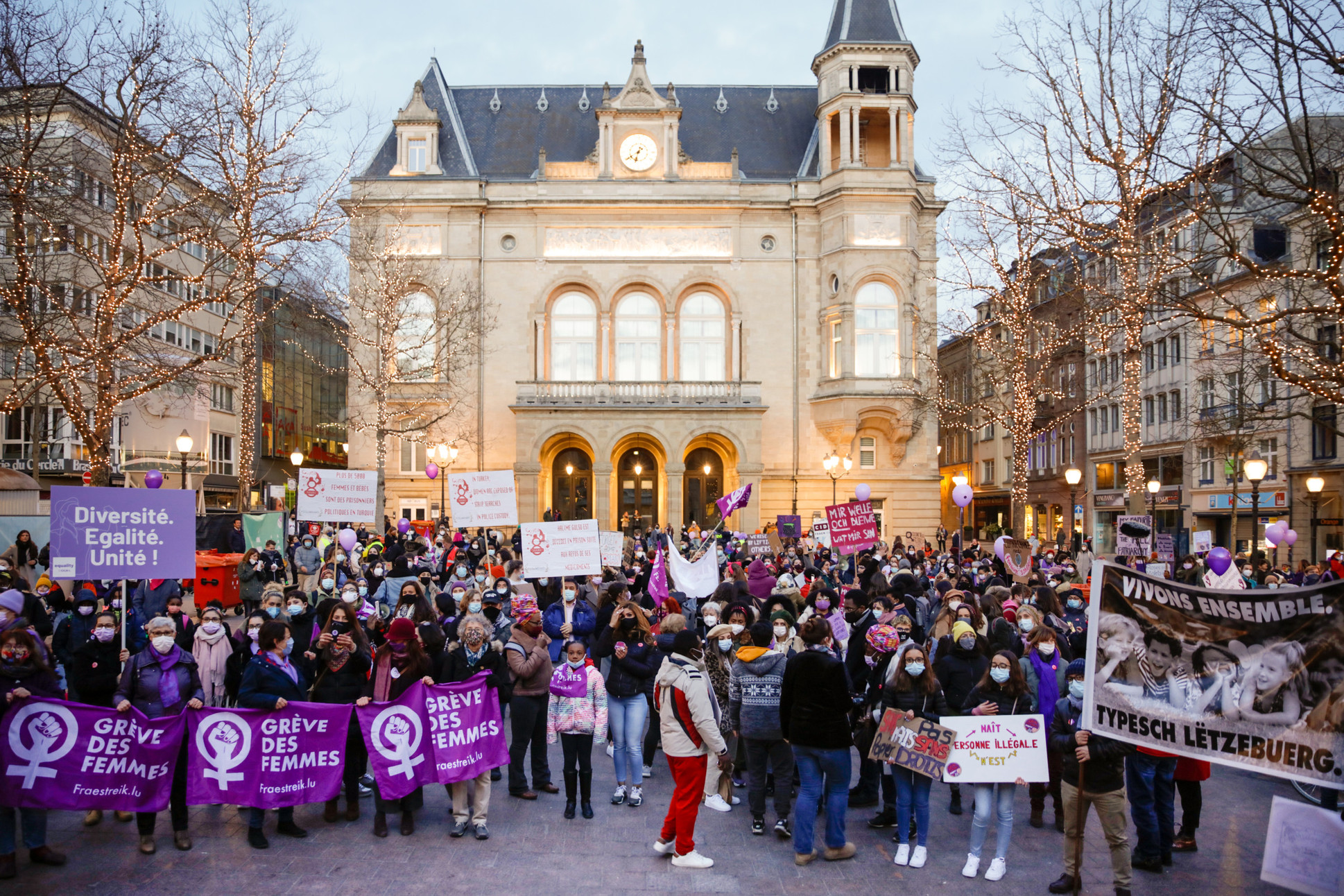 De 1.000 à 1.200 personnes ont participé, lundi en fin d’après-midi, entre la gare et la place d’Armes, à la deuxième édition de la Grève des femmes, lancée pour sensibiliser aux nombreux chantiers qui restent ouverts avant de pouvoir parler d’égalité hommes-femmes. La ministre de l’Égalité entre les femmes et les hommes, Taina Bofferding (LSAP), et le ministre du Travail, de l’Emploi et de l’Économie sociale et solidaire, Dan Kersch (LSAP), se sont brièvement adressés aux participants de cette initiative.