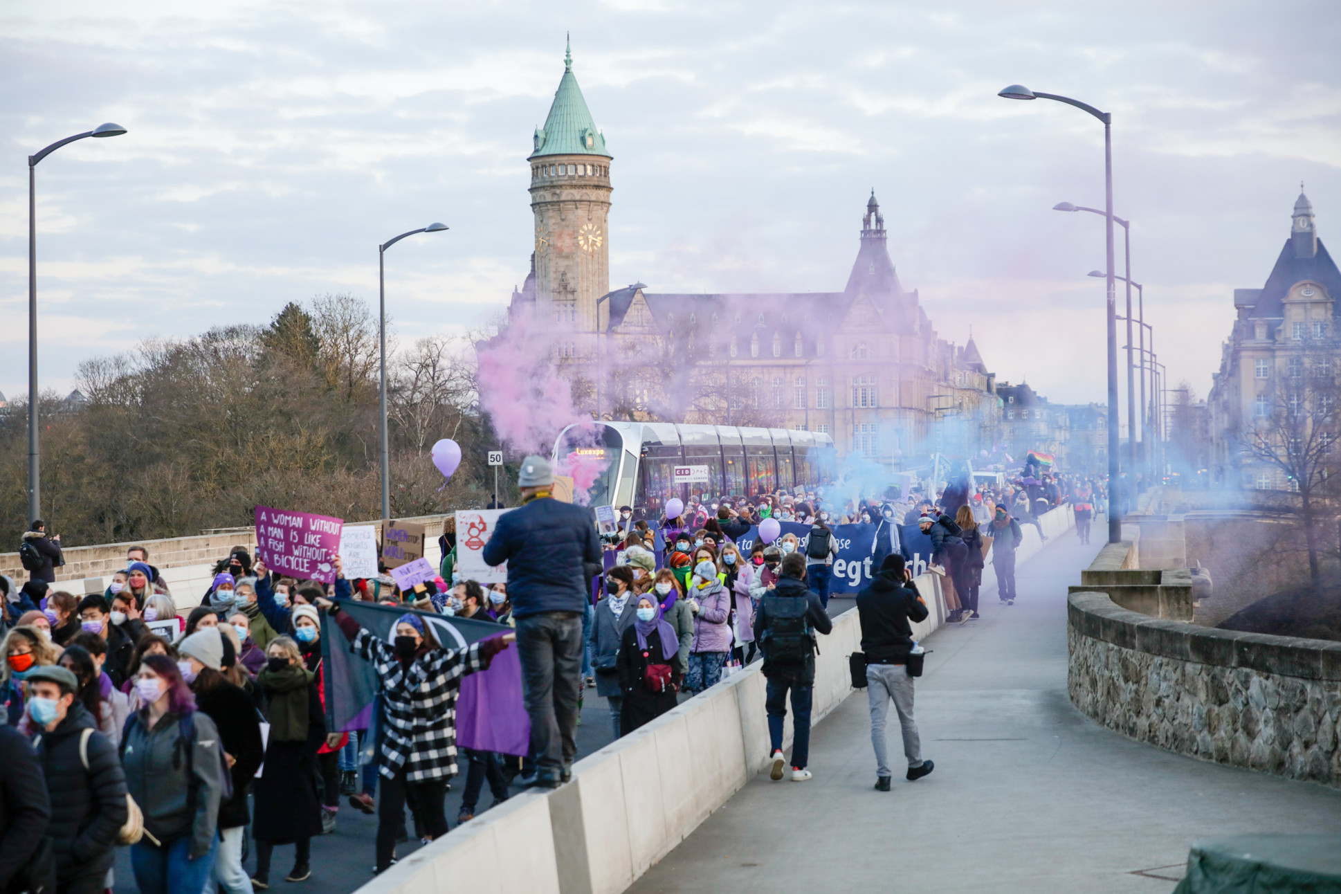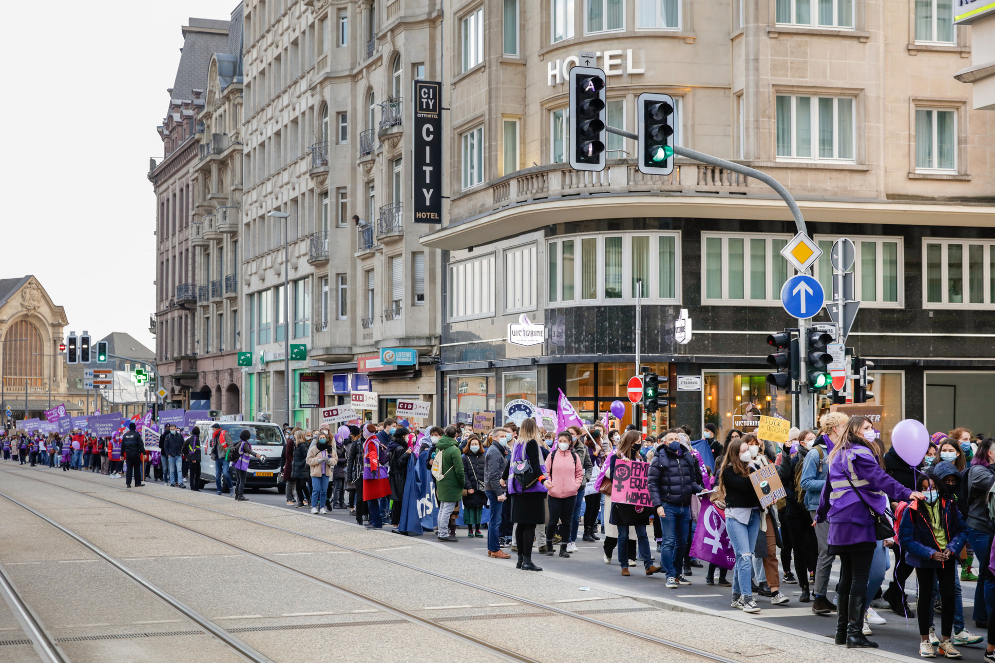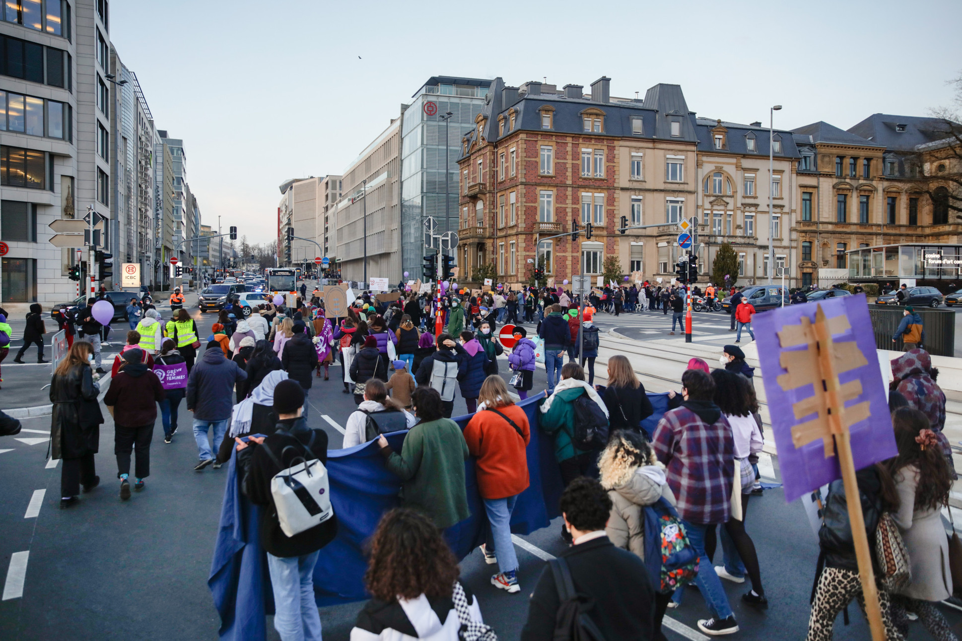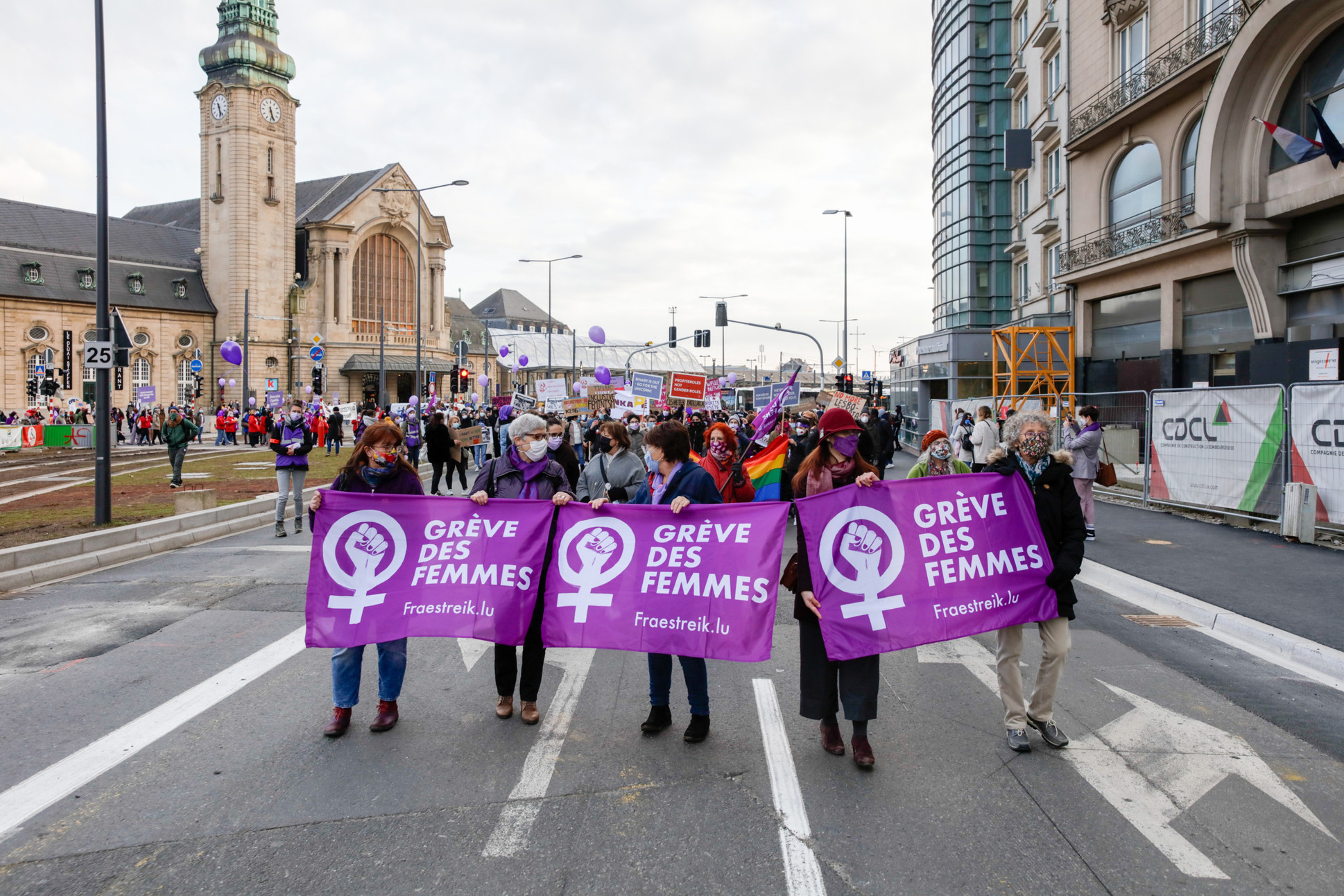 De 1.000 à 1.200 personnes ont participé, lundi en fin d’après-midi, entre la gare et la place d’Armes, à la deuxième édition de la Grève des femmes, lancée pour sensibiliser aux nombreux chantiers qui restent ouverts avant de pouvoir parler d’égalité hommes-femmes. La ministre de l’Égalité entre les femmes et les hommes, Taina Bofferding (LSAP), et le ministre du Travail, de l’Emploi et de l’Économie sociale et solidaire, Dan Kersch (LSAP), se sont brièvement adressés aux participants de cette initiative.