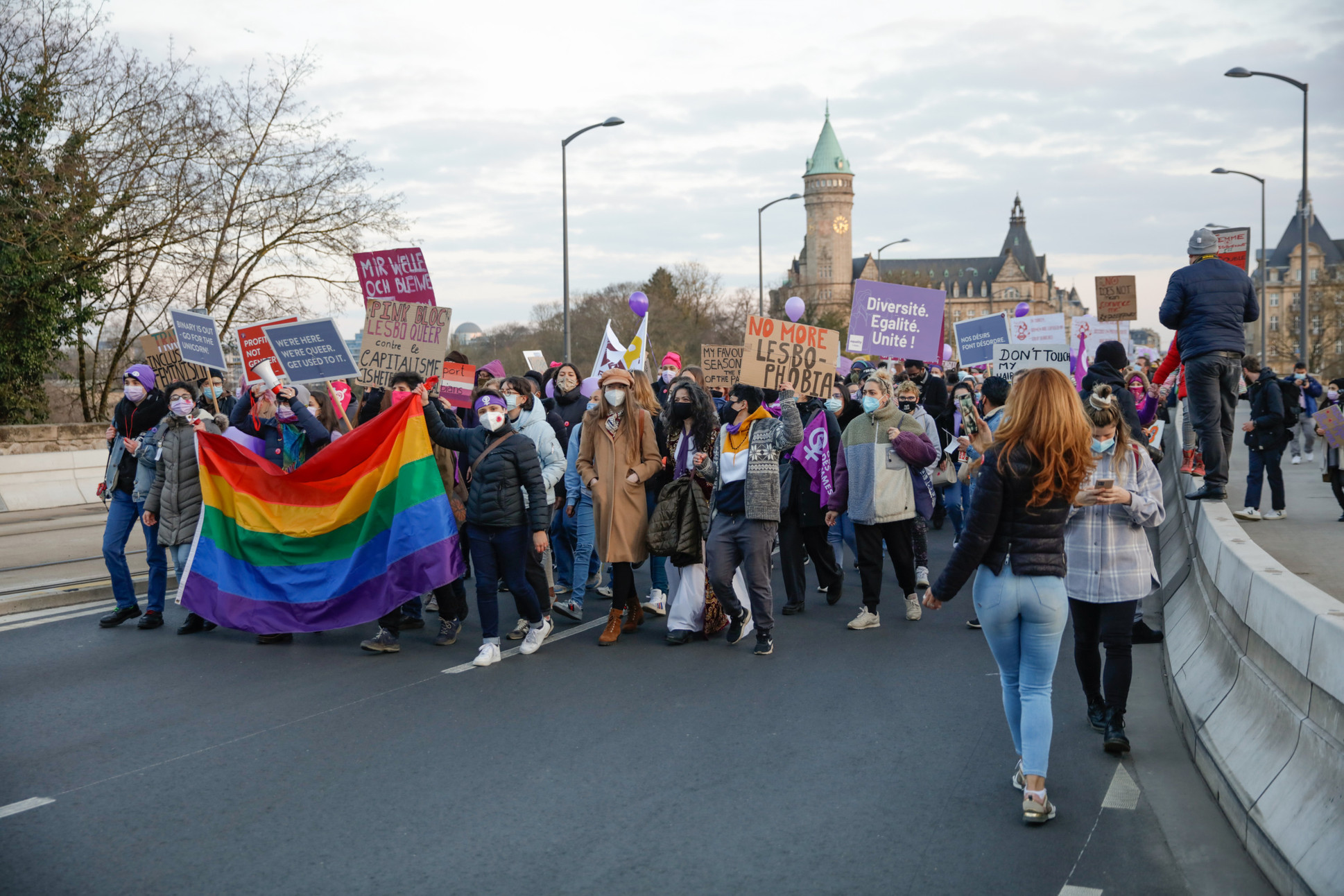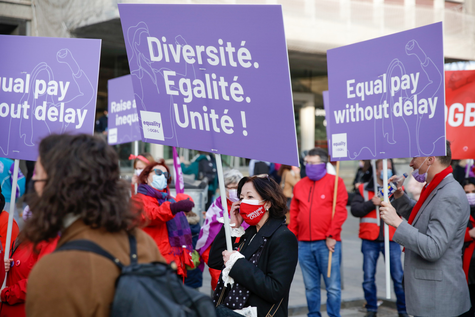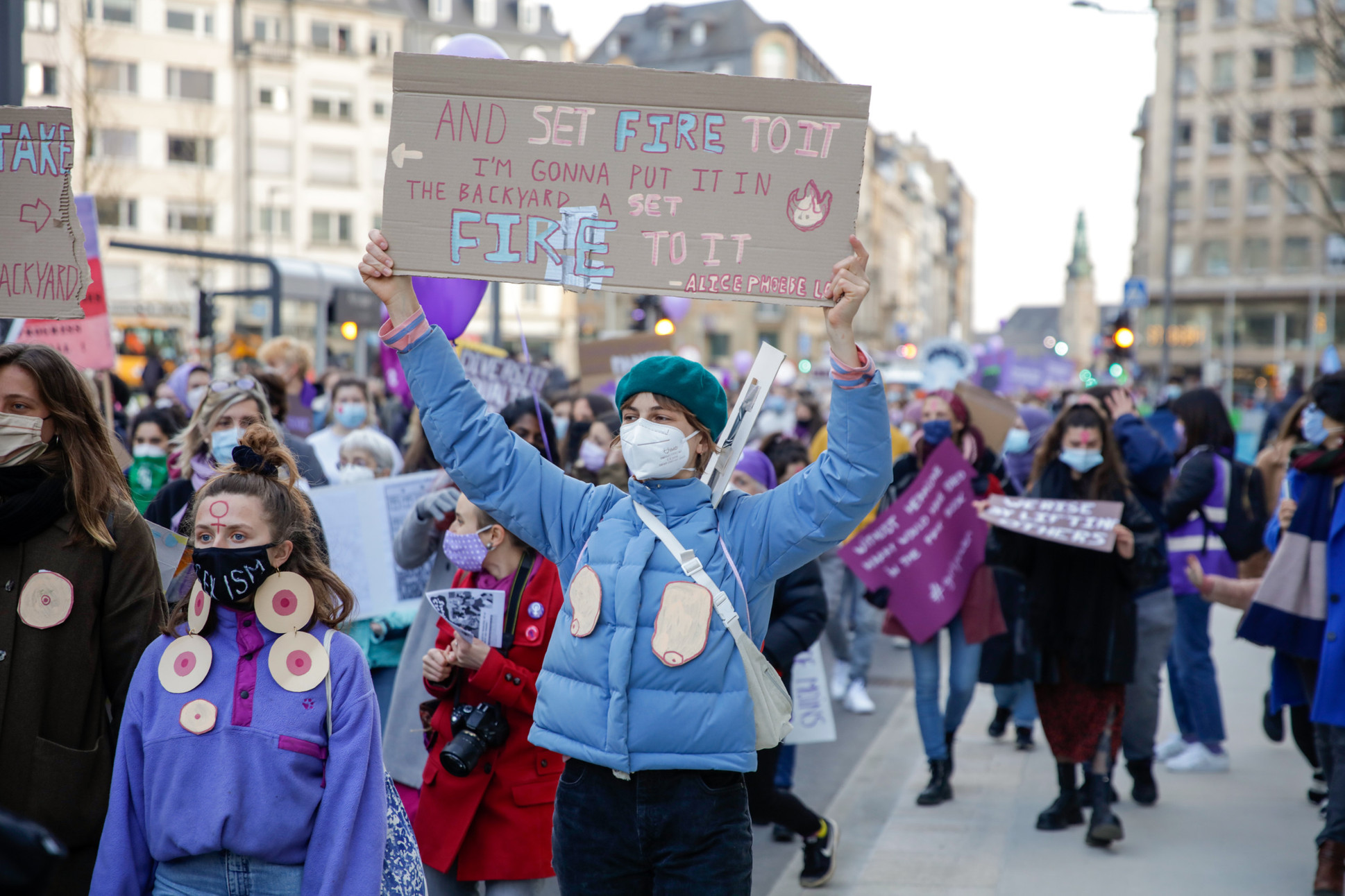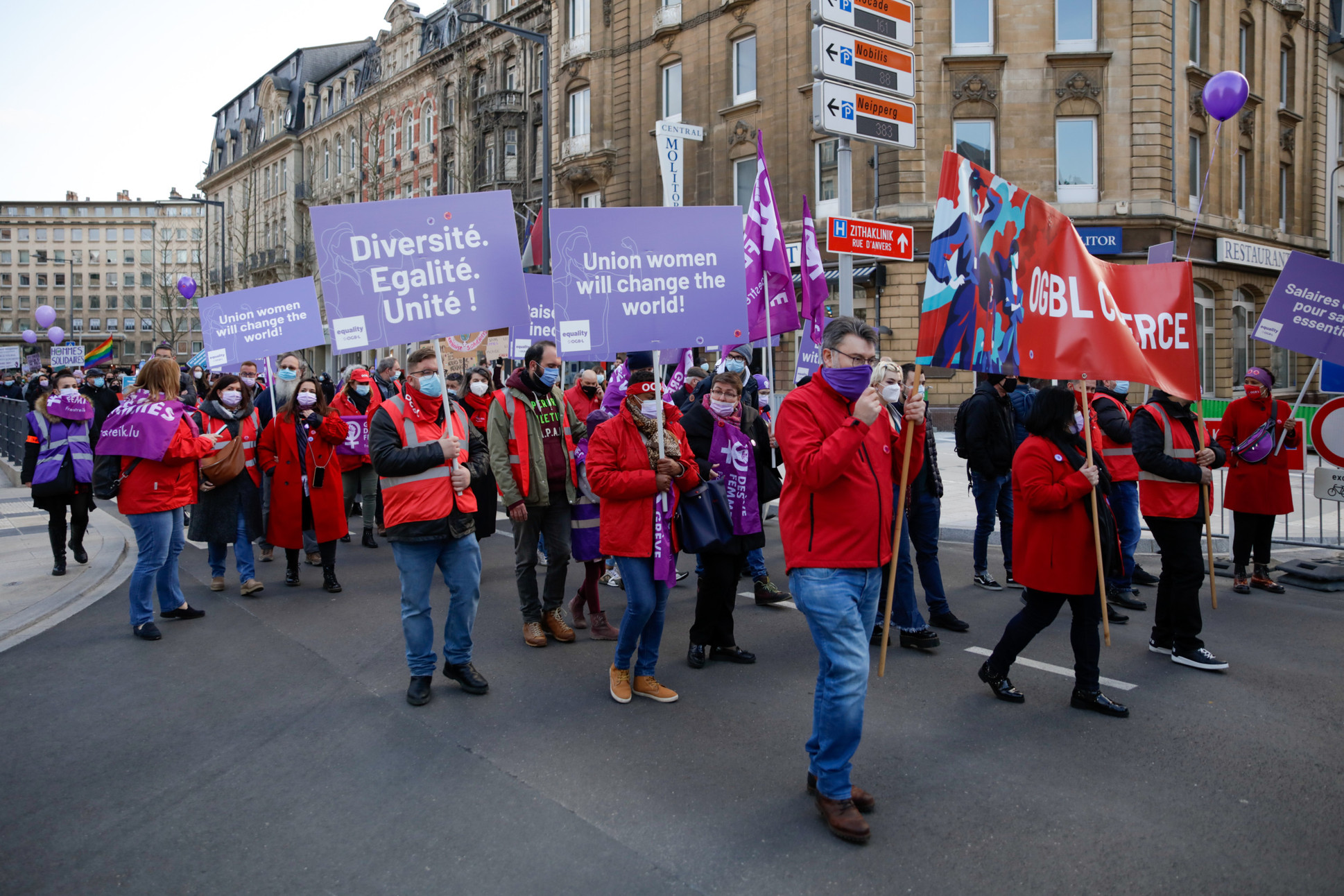 De 1.000 à 1.200 personnes ont participé, lundi en fin d’après-midi, entre la gare et la place d’Armes, à la deuxième édition de la Grève des femmes, lancée pour sensibiliser aux nombreux chantiers qui restent ouverts avant de pouvoir parler d’égalité hommes-femmes. La ministre de l’Égalité entre les femmes et les hommes, Taina Bofferding (LSAP), et le ministre du Travail, de l’Emploi et de l’Économie sociale et solidaire, Dan Kersch (LSAP), se sont brièvement adressés aux participants de cette initiative.