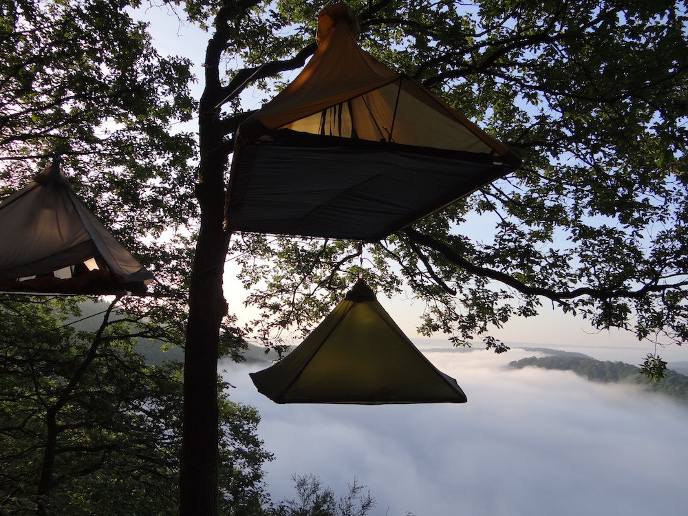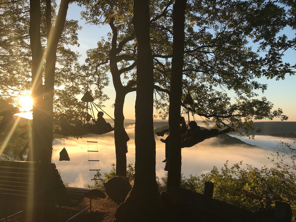 C’est dans ces mêmes portaledges que dorment aujourd’hui (par deux) ceux qui prennent part à l’activité qu’il propose et a baptisée «Cloefhänger». «Si c’est dangereux? C’est la question qu’on me pose à chaque fois», sourit ce natif de la Sarre. «Et la réponse est évidemment: non. Déjà, vous n’êtes pas très haut. Et quand vous êtes dessus, c’est un peu comme dans un hamac. On se sent bien!»