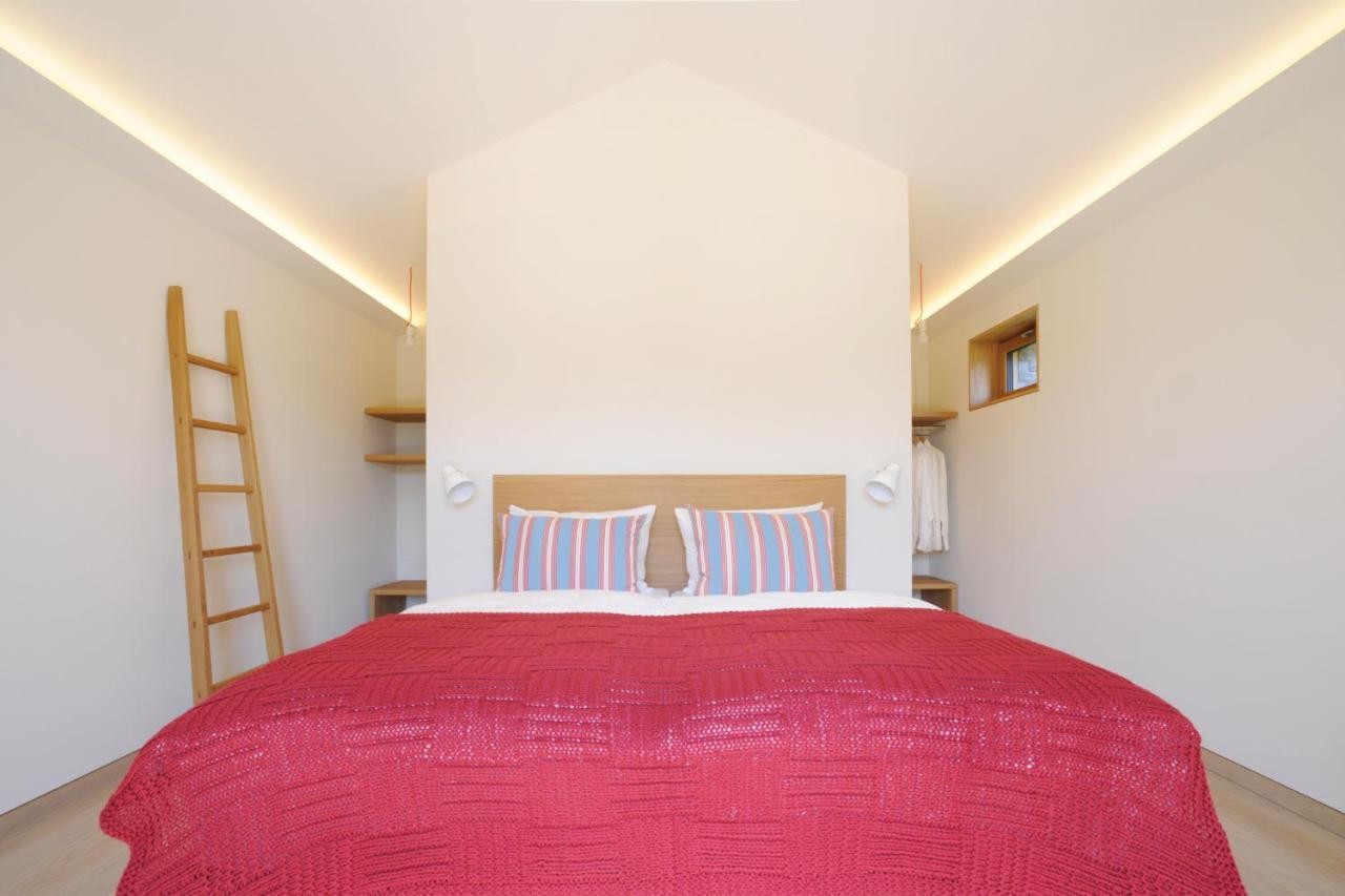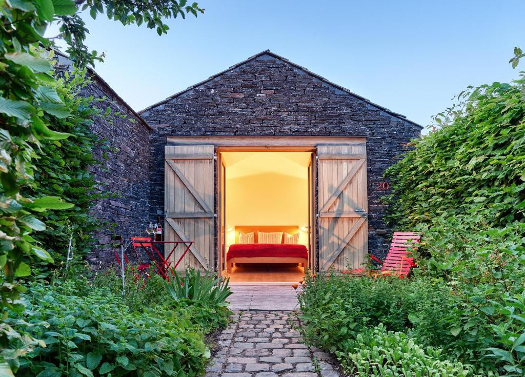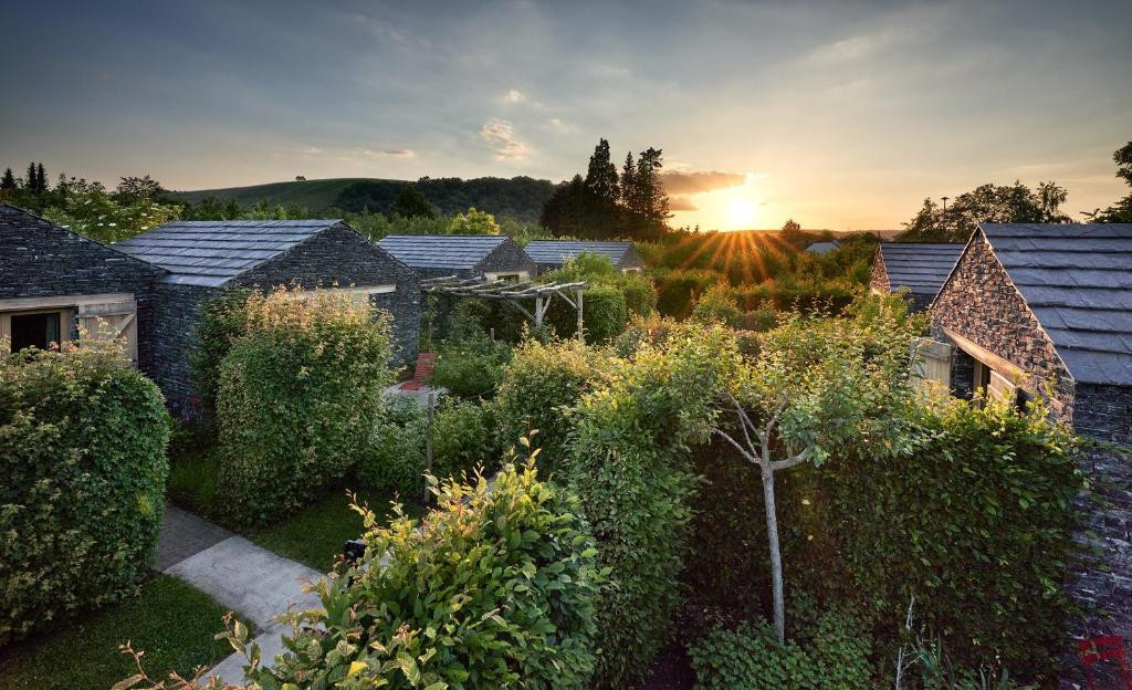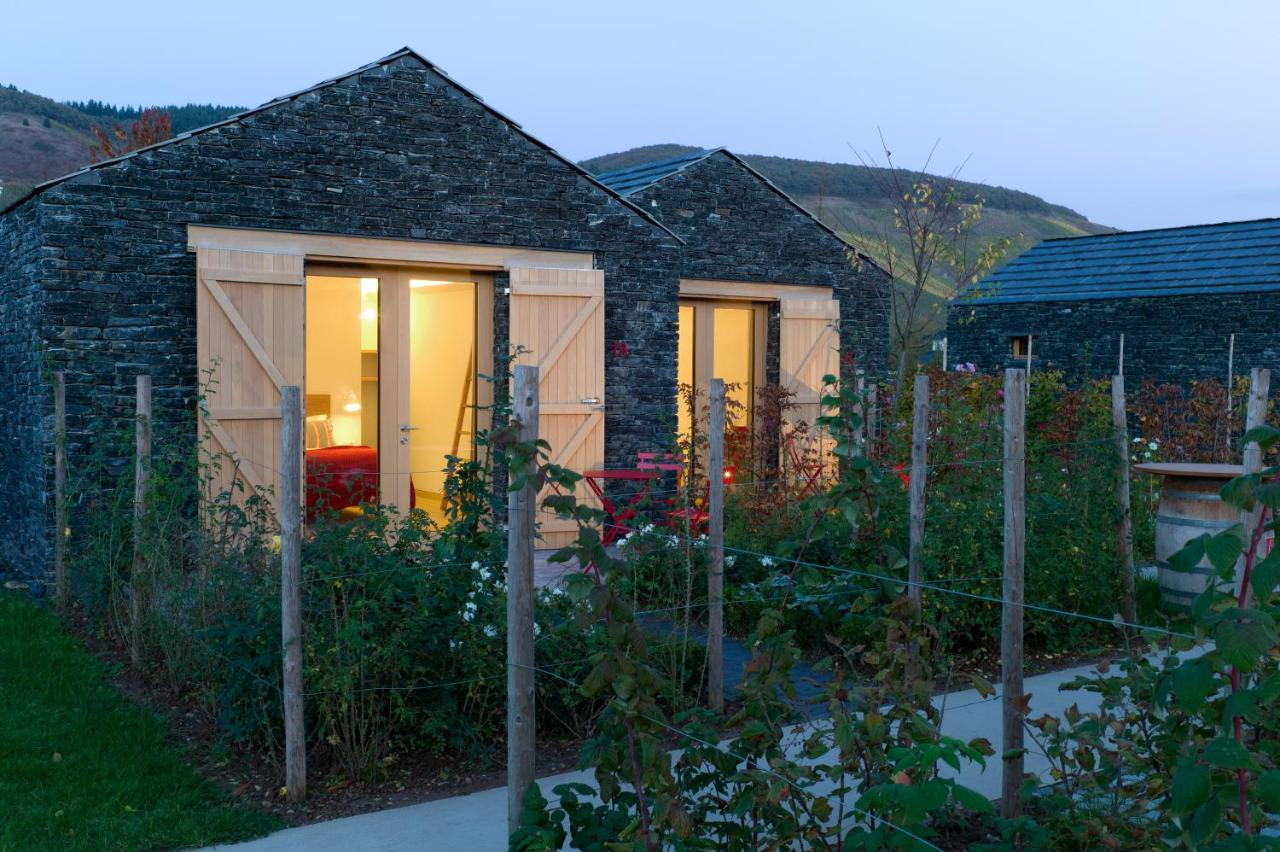 «Nos maisonnettes sont bâties à partir de matériaux locaux: l’ardoise, c’est-à-dire le terroir de la vigne, et le chêne, que l’on trouve directement dans les vergers du domaine», continue Sabine. Composées d’une chambre, d’une petite salle de bains moderne et d’une terrasse privée donnant sur un jardinet individuel, elles s’intègrent magnifiquement dans ce décor de vignes.